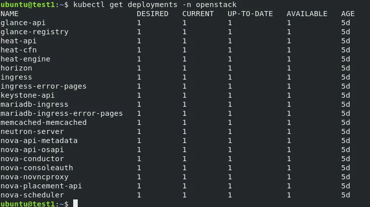 kubectl get deployments -n openstack