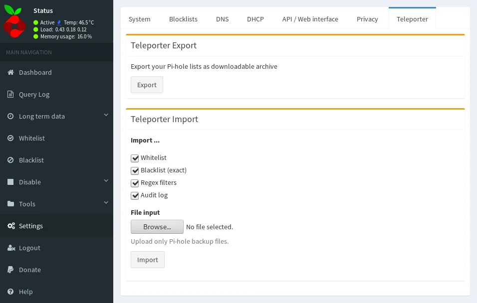 The Teleporter export and import make the migration very easy as these will bring over your Whitelist, Blacklist and regex filters over to the new pi-hole for you.