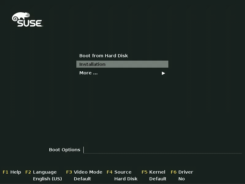Boot the admin node with the SUSE CaaS ISO (SUSE-CaaS-Platform-3.0-DVD-x86_64-GM-DVD1.iso) and select Installation from the boot menu